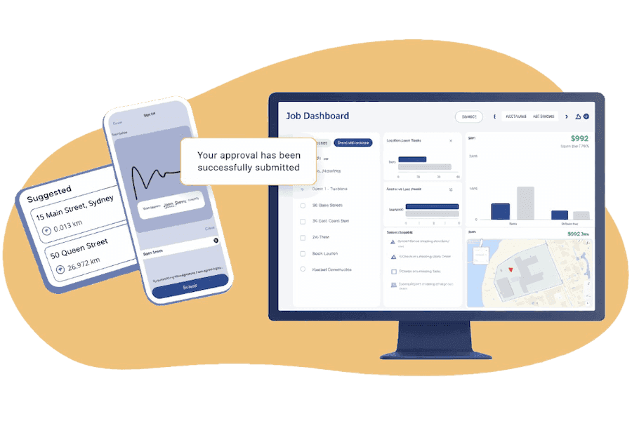 Secure approval from your client for every job or hour worked, track in the dashboard, and easily export out to reduce the stress of invoice disputes.